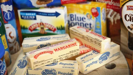 The accomplished environmentalist and food policy expert Jean Dye Gussow once remarked, "as for butter versus margarine, I trust cows more than chemists." While butter is, of course, made by churning milk, margarine, on the other hand, is a substitute that is typically made of vegetable oils, water, and salt. As a result of a butter scarcity during World War II, margarine soared in popularity amongst American consumers, and this continued through the rest of the 20th century. Adding to its momentum, in the 1970s, it became widespread knowledge that saturated fats were associated with heart disease, which pushed more people away from butter. Margarine was chosen for its perceived health benefits with its unsaturated fats and celebrated for its ease of spreading on bread. With the help of low-cost alternatives and brands like "I Can't Believe It's Not Butter!" — U.S. margarine production soared in the later part of the 19th century.