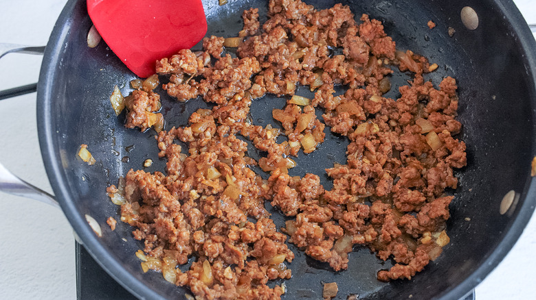 - Add the chorizo to the pan and cook, breaking it up, until it is just cooked through, about 6 minutes. Remove the chorizo from the pan to a separate bowl.