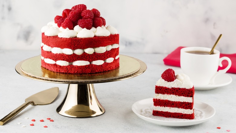 To many, red velvet is a familiar flavor that cannot be quite pinned down. Some say with utmost confidence that red velvet is just chocolate with red food coloring. But there is much more nuance to it than that — and it stems far beyond the fact that red velvet is typically topped with cream cheese frosting while the topping isn't so commonly used for chocolate cake.