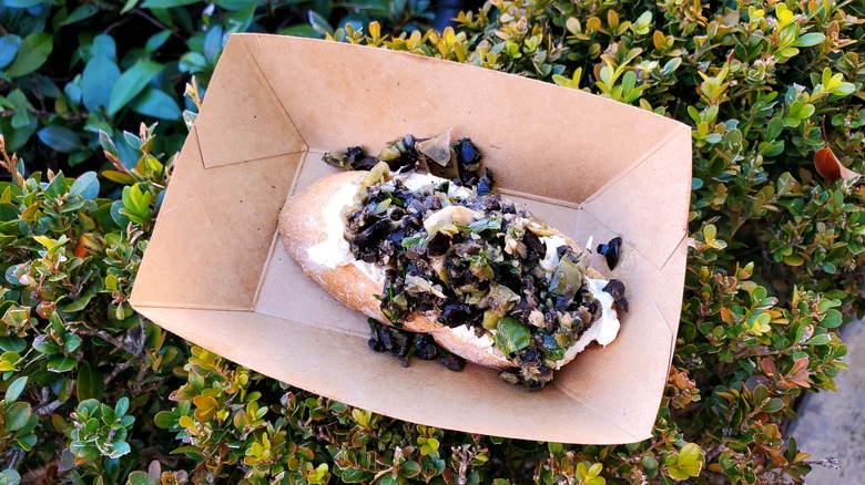 We love a good crostini: a nice piece of French bread that's toasted and then smothered with cheese, veggies, or fruit. It's the perfect way to get those juices flowing and ready for the main course. The Disney chefs are pros at making this great app, as the bread is always toasted perfectly and then covered with a wide range of toppings. This artichoke toast from I Heart Artichokes was part of last year's festival and it was such a big hit, it was brought back. We couldn't be happier. The minute we saw it listed in this year's Tasting Passport, we knew we had to get it.