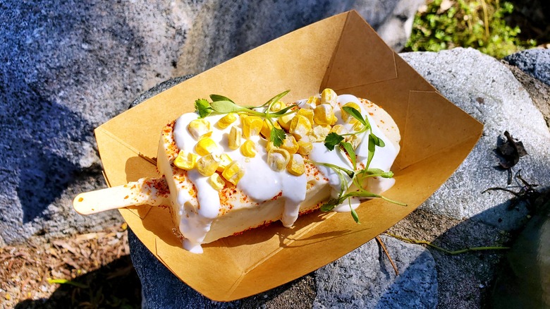Have you ever had corn ice cream? We know it seems like an odd combination, but trust us when we tell you it's a tasty treat. Since corn tends to be a sweeter vegetable, it makes sense that it's been turned into a popular ice cream flavor. The Disney chefs recognized this new trend and decided to jump in with both feet by not just serving a simple scoop of corn ice cream, but creating an amazing popsicle out of it.