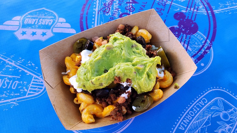 Nachos could very well be the perfect appetizer. The concept of corn chips piled high and covered with a thick, gooey cheese sauce makes it one of the best appetizers out there. Add some ground beef, beans, and tomatoes, and you've got yourself a full meal. Well, what if you replaced the chips with macaroni and added some guacamole? Sound like a strange combination? We thought so, too ... until we tasted it. Then, we couldn't stop eating it.