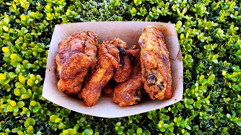 Chicken wings are the ultimate picnic or party food. They're small, easy to pick up, and usually a flavorful bite. While they could be on the messy side, we don't mind taking the extra time to lick our fingers and lips. As a matter of fact, we look forward to that extra lick, because it means we get one more chance to taste the rub or sauce the wing is bathed in. Happily, that's the case with these hot wings from Cluck-A-Doodle Moo.