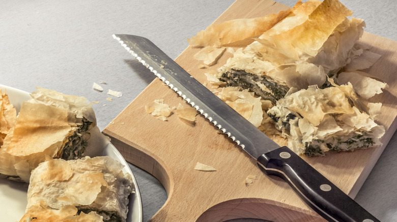 Serrated knives are essential for everything from slicing tomatoes to cutting bread. Many people are under the (incorrect) assumption that these knives can't be sharpened, but there is an easy trick for sharpening serrated knives. Simply start by looking for the blade's edge, located in the gullet, and determine which side the bevel is on. To the naked eye, you should be able to see that one side is flat while the other is angled. Once you have determined this, run a honing steel in between each tooth of the knife. After, run some sandpaper or the honing rod on the other side to make sure you have removed any metal burrs.