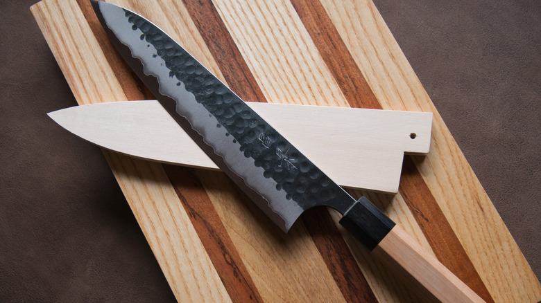 While wooden knife blocks or magnetic knife strips work fine, professional chefs often use dedicated knife guards or wooden sayas. Only these can protect the edge from damage and the edge from damaging you, no matter where you store your knife. No matter what you choose, make sure your knife is clean and dry before storage.