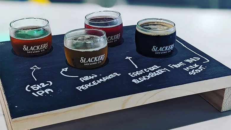 The flagship beers are Slackers include two IPAs, a Belgian blonde, Kolsch, a nitro milk stout, and a very unique Ghost pepper porter. The beers cycled in on rotation include a black Kolsch, a peach blonde ale, and a strawberry-rhubarb cream ale, to name a few. Slackers is the perfect place to relax with so much beer to choose from, all of which will wind you down in no time.