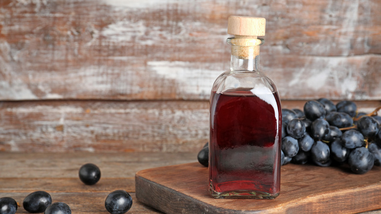 Because red wine vinegar is made from wine, you should act like you're shopping for wine when you pick up a bottle of the sour stuff. According to Serious Eats, you should check the bottle to see if the grapes fermented to make the vinegar are listed. A bottle from American Vinegar Works, for example, writes on the back of the label that it is made with, "A bold, rich and warm Shiraz from California" (though the ingredients list only mentions "red wine vinegar" and "spices"). Shiraz is a popular choice for small-batch vinegar makers due to its bold flavors, which come through the tartness of the condiment.