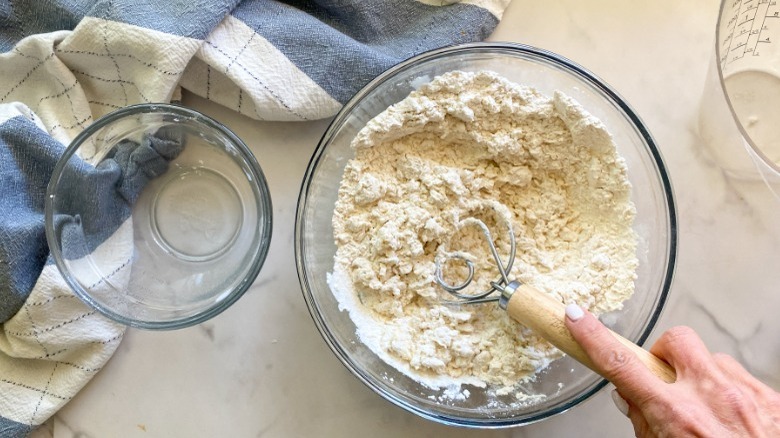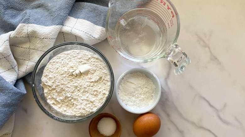 To make this recipe, you most likely don't even need to go to the store. You will need some all-purpose flour, salt, an egg, ice water, and cornstarch. We told you it was simple! "We are mainly using the corn starch here so that the wrappers don't stick together but you can easily use parchment paper instead if you don't have corn starch on hand," Hahn shares