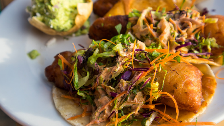 Haddock's soft texture makes it a great choice for fried fish tacos. A light beer batter on the fish will provide a crisp, puffy texture while maintaining a tender interior. You can provide additional texture from the cabbage slaw topping, but deep-fried haddock when not overly coated with batter, will not sit too heavy in your stomach. One thing of note is that if you are someone with a sensitive palate, haddock is known for having a fishier taste compared to cod, which is fairly neutral in flavor.