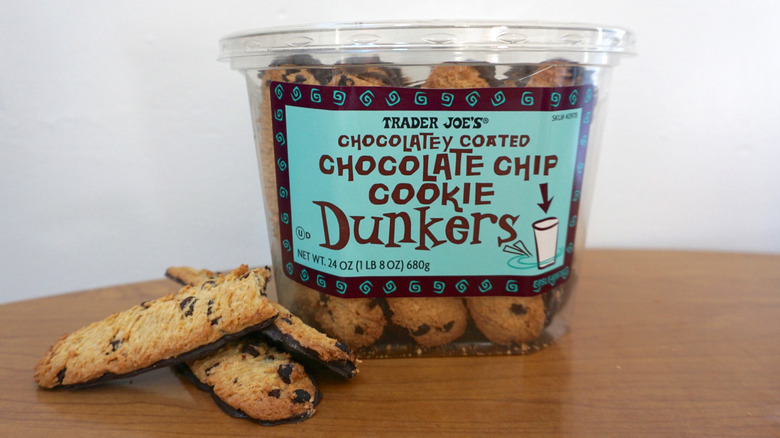 For the bronze medal, we have TJ's Chocately Coated Chocolate Chip Cookie Dunkers. Say that five times fast. While we weren't as over the moon about these as the Way More Chocolate Chips Cookies, they still hit the spot. Plus, they're pretty unique. The folks at TJ's took the idea of a regular chocolate chip cookie, basically made it into a biscotti shape, and then covered half of it in chocolate. That sounds like a winner in our book — and it definitely is.
