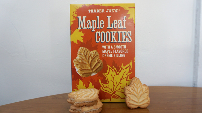 With that being said, that doesn't mean we were instant fans of the cookie. The maple leaf shape is cute (and these would look perfect on an autumn charcuterie board), the maple flavor was there, there is a good amount of the filling in the middle, and the cookie itself is soft without falling apart. What we've come to realize with this cookie is that maple syrup is amazing, but it's pure sugar. It works best when paired with other elements, like pancakes or bacon. On its own, it is incredibly sweet, and we had enough after half a cookie. These were pretty middle-of-the-road.