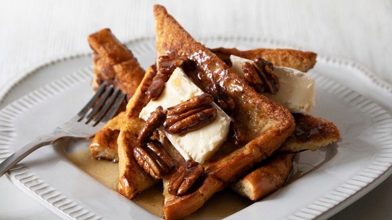 Currence's time in test kitchens has opened up the opportunity to work with unique ingredients that can elevate the flavor of French toast. He's experimented with cardamom and garam masala in the past and Chinese five spice. He says, "All of those things come to me because of my fascination with sweet and salty ... playing off sweet and salty flavorings works well in any dessert," — French toast included.