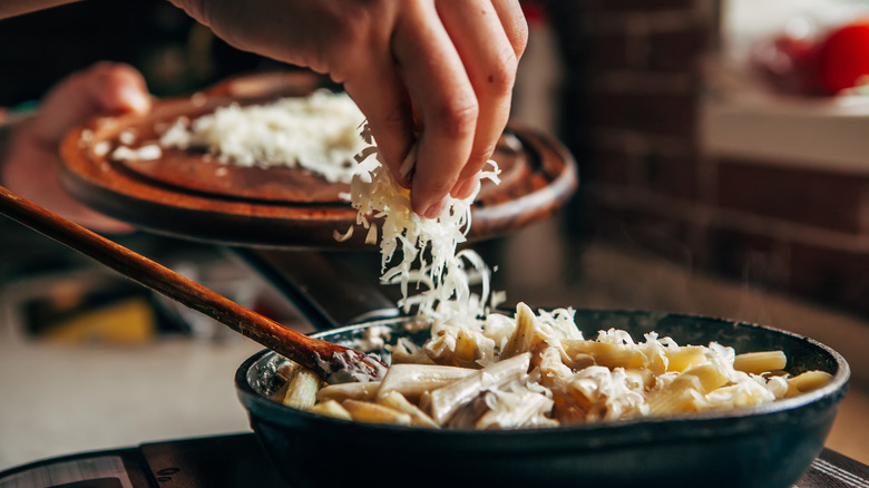Somewhere along our culinary timeline, a genius introduced cheese to pasta, altering reality as we know it. For something now considered normal, it must've been groundbreaking at the time. Hailing from a lineage of Italian cuisine connoisseurs, it makes sense that De Laurentiis knows the best way to add cheese to pasta. The tip was passed down by her grandfather, who she lovingly refers to as "Nonno." Before adding pasta to your sauce, you should grate cheese into your pasta. Never the other way around.