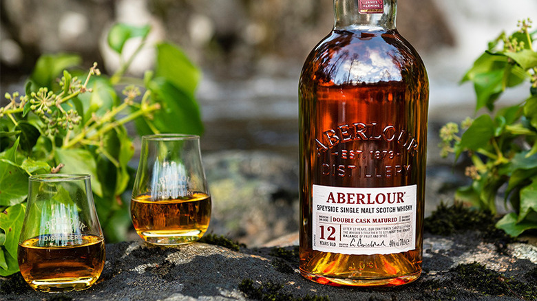 Aberlour is another Speyside brand of Scotch and offers a diverse catalog of single malt whiskies matured in different types of wood and for varied lengths. The brand's flagship bottle is its 12-Year Double Cask. This whisky is matured in both traditional oak casks and sherry-seasoned casks, which results in a classically soft and fruity Speyside Scotch with hints of dry spice for extra layers of depth.