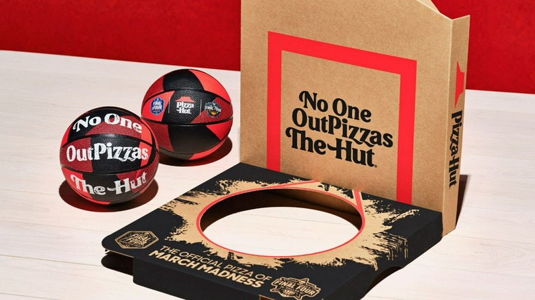 On Wednesday, March 8, Pizza Hut announced that in connection with its sponsorship of the 2023 NCAA Men's Basketball Tournament, it's bringing back its beloved Mini Basketballs for a limited time. The last time these smaller-than-regulation balls were seen at Pizza Hut was sometime during the 90s. Black and red and emblazoned with "No One OutPizzas The Hut," they'll become available on March 14, to coincide with the Tournament's "First Four" (i.e., the first four games, which will be played by the eight lowest-ranked teams).
