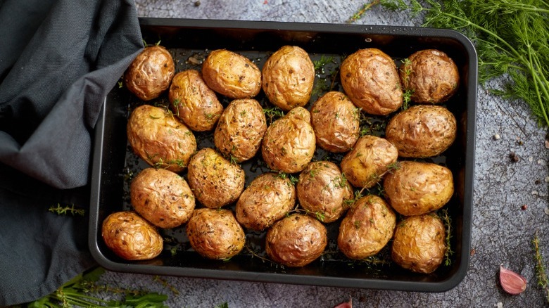 When it comes to baking anything, preheating the oven is a no-brainer, but did you know that whether or not you preheat the baking tray also has a direct impact on how your potatoes will turn out? Putting your potatoes on a cold baking tray may cause them to stick to the surface, and you risk the skins becoming soggy. By preheating it, you ensure that the potatoes have an evenly heated surface to cook on, which can help create that desirable crispy outer layer. Doing so might also cut down the cooking time, as the potatoes will start baking as soon as they get in touch with the hot sheet.