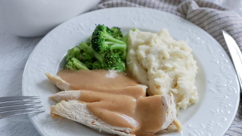 Tasting Table recipe developer Jessica Morone created a simple chicken gravy recipe that's delicious and impressive. She shares, "I love this recipe because it's easy to make and tastes much better than store-bought gravy." It might seem like a trivial swap, but once you try the homemade stuff you won't want to go back to jarred gravy. "Even if you aren't a great cook you can still make this without too much effort and it will come out great," Morone reassures us. Take her word for it — this recipe is straightforward and the results are well worth it for less than 30 minutes of work.