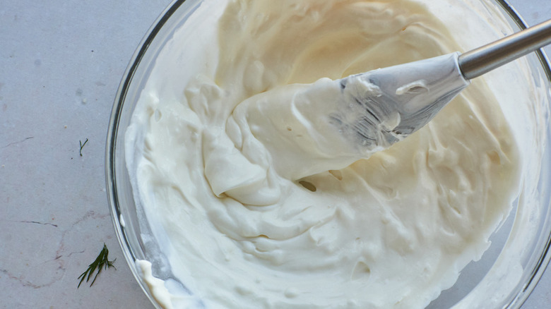 Combine the cream cheese with the crème fraîche, lemon juice, and caper brine. "If you can't find crème fraîche," McGlinn says, "Don't sweat it, just use cream cheese or stir in a little Greek yogurt." Sour cream makes a great crème fraîche substitute, as well. McGlinn also notes that if you skip the capers, and thus have no caper juice to add to the mix, you should add a pinch of salt in order to compensate for the missing brine. Whatever combination of ingredients or substitutes you wind up with, beat the cream cheese mixture until it looks smooth, light, and fluffy, then spread this creamy fluff onto each bagel half.