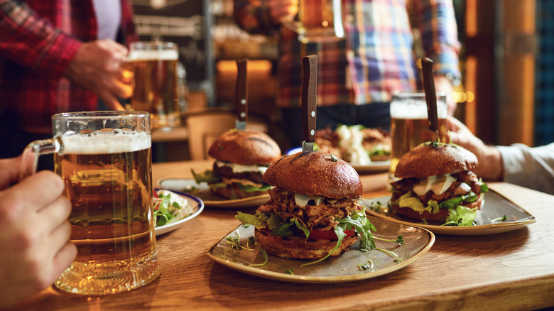 Still, Anthony Bourdain once proposed to Insider that when designing a burger, one shouldn't get carried away. "Is this thing that I'm doing to a perfectly good classic dish, is it making it better?" he suggested cooks ask. But, this isn't the only question a chef or restauranteur asks themselves when considering a burger's place on their menu. Because the burger crave is real, some chefs ask themselves, "Will my burger overshadow my other dishes?," and others wonder whether to feature one at all.