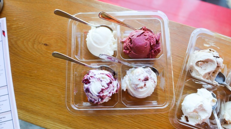 According to Malek, sometimes you have to denature an ingredient a bit to get it to work. For example, the ice cream developers at Salt & Straw toast brownies to a biscotti texture before folding them into the ice cream to ensure it doesn't get soggy. High-sugar ingredients like the jam in the Wild-foraged Berry Pie flavor have to be just the right thickness to still be gooey once frozen, even if that means making it a completely different way than you would ordinarily. Malek also likes to keep the seeds in the marionberry jam, because the crunchy texture adds to the experience.