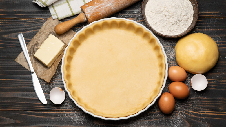 When it comes to pastry dough, pie crust ranks among one of our favorite ways to consume it. After all, every great pie — fruit, cream, or of the savory variety — starts with a golden brown and flaky crust. At its most basic, pie dough uses staple ingredients like flour, butter, salt, and water. Of course, there are always those unexpected ingredients many bakers add to their pie crusts that can separate a good pie from a great pie. Vinegar, lemon juice, buttermilk or vodka can really change the texture and flavor of a pie crust. But these aren't the only ingredients that can affect the way your pie crust tastes.