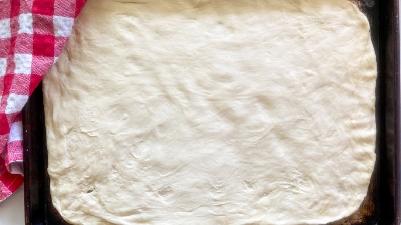 Spread the dough on the sheet pan