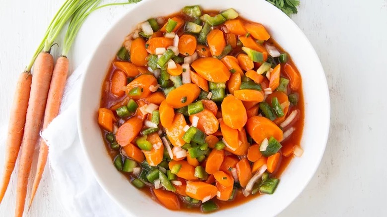 Nutritious and delicious, these copper penny carrots make a flavorful side dish that's perfect for Easter. A tangy tomato-vinegar sauce contrasts the sweet carrots, vibrant onions, and green peppers. Copper penny carrots are a refreshing side to serve with a heavier holiday spread, and even the pickiest eaters won't be able to pass up this luscious spring vegetable dish.