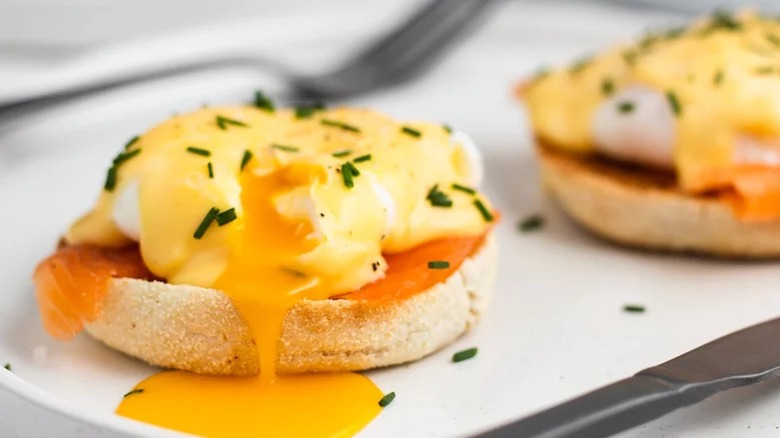Make Easter brunch a memorable meal with decadent eggs Benedict upgraded with savory smoked salmon. A buttery hollandaise sauce poured over perfectly poached eggs lends intensely rich flavors that build as the luscious yolk spills onto the smoked salmon and into every nook of a toasted English muffin.