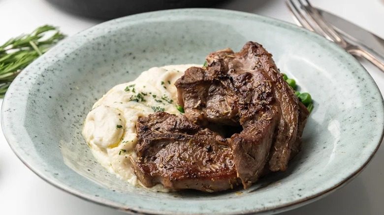The herby undertones and bold garlic flavor featured in these gamey lamb chops pair nicely with creamy mashed potatoes and a spring mix salad.