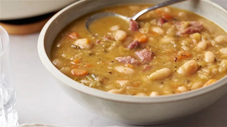 Spring may have sprung, but there's usually a lingering chill in the air around Easter. That means there's still time to tuck into a warm bowl of nourishing soup. This soup boasts layers of flavor that start with a classic mirepoix sautéed with leeks and garlic. But, the real flavor powerhouse is smoked ham hock, which can easily be replaced by leftover ham from your Easter feast. Soaked great white beans are added to the aromatic base and simmered with flavorful chicken stock so they can absorb all the flavors.