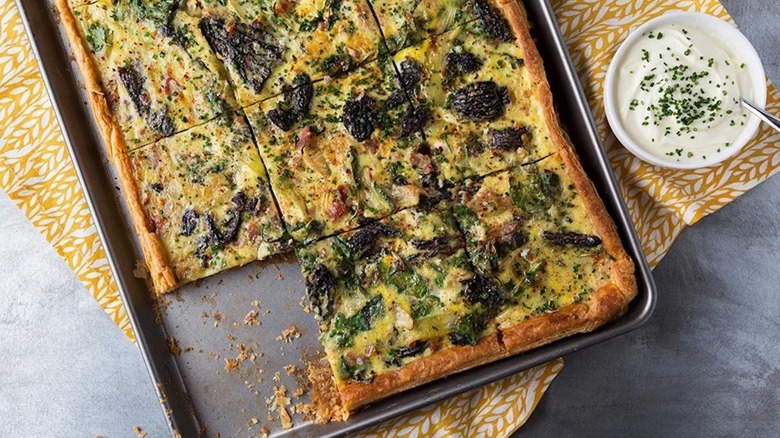 When you're entertaining a group for Easter, pull out the sheet pan to make sure there's enough quiche to go around. This recipe calls for store-bought pastry dough pressed into the pan to form the base of the quiche. After being blind-baked to a golden brown, fill the crust with an egg mixture that boasts savory flavors from sautéed mushrooms, onions, salty prosciutto, and peppery watercress greens.