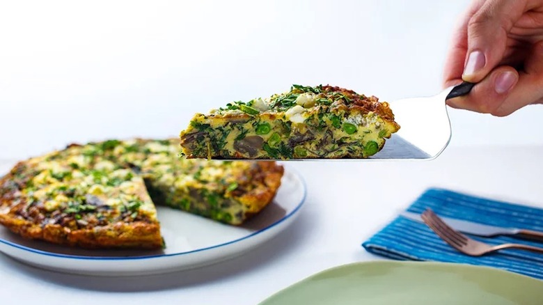 This egg frittata is loaded with fresh spring flavors and comes together easily to make a tasty meal for breakfast, lunch, or dinner on Easter day. Early spring garlic is the star of this dish, flavoring the frittata with its nutty onion essence. Maitake mushrooms bring a meaty texture and fresh green peas add a hint of sweetness. A heavy-handed hit of herbs ties the dish together, featuring the aromas and tastes of the new season.