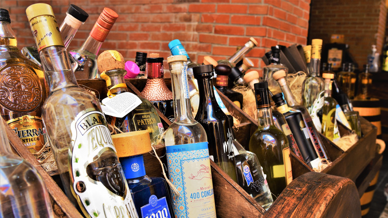Like all of Patrón's flagship offerings, the brand never shies away from bragging about its bottle's high-quality content. Made entirely from "the finest" Weber Blue Agave and produced using the Tahona method — a system wherein a volcanic stone pulverizes agave hearts, sometimes with assistance from donkeys — El Alto represents a crossroads for tequila enthusiasts by blending three types of tequila (four-year extra añejo, añejo, and reposado) until Patrón's high-end dream-drink comes to life.