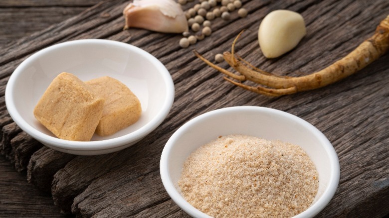 While this tip might seem like an obvious one, using a bouillon cube to season your gravy can often be overlooked. Many of us are used to making our gravies from roasted pan drippings and a simple roux (a cooked mixture of flour and fat), so when it comes time to make a quick sauce or remedy a bland gravy, bouillon may not readily pop to mind. Not only are bouillon cubes an easy get from your spice cupboard (most of us have some cubes lingering in there), but it's also a one-stop way to add maximum flavor to your gravy. That's because these condensed flavor bombs are packed with salt and come in varieties like chicken, turkey, beef, mushroom, or vegetable. They also contain aromatics like mirepoix, and in some brands, flavor enhancers like MSG.