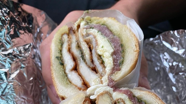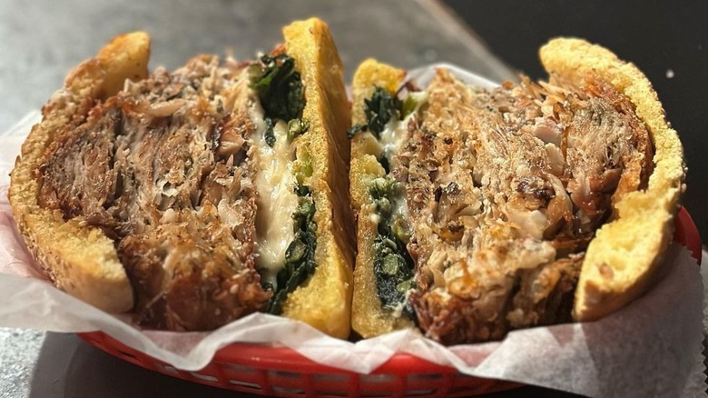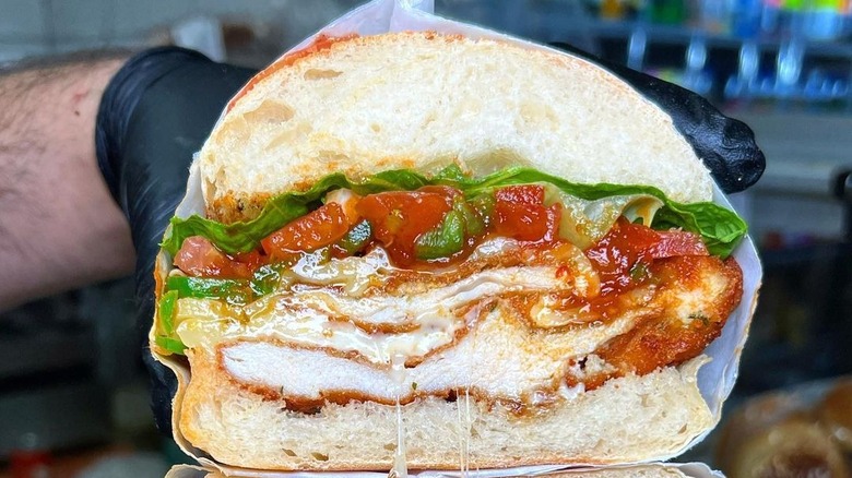 One such sandwich that draws a number of fans is the Chicken Cutlet Pesto Sandwich with fresh mozzarella cheese. The perfectly crisp chicken cutlet, fresh pesto, and melty mozzarella come together in a massive pile on a hero to make for a more-than-filling lunch. However, while the sandwiches may be large, so are the price tags. This delicious Italian cutlet delight will cost you a hefty $21. Some other popular Fiacco's sandwiches, including the Chicken Parm Fradiavolo and the Italian Special Sandwich, even hit a whopping $25 price tag. With prices like this, we recommend sharing with a friend to truly get your money's worth.