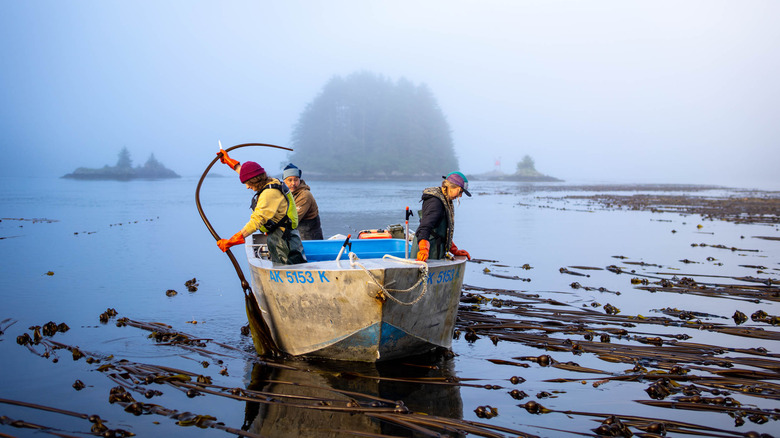If you live in Alaska or Northern California, there's a good chance you could get your hands on some fresh bullwhip kelp at your local fish market, a farmer's market, or even washed up on the beach after a large storm — so you may as well make your kelp pickles yourself. Before doing that, however, always check with your local authorities. As touched on before, harvesting bullwhip kelp often requires a permit. Laws also prohibit you from collecting bullwhip kelp in certain areas, and even if you're collecting it from the beach, you'll want to confirm the water conditions with your local authorities to ensure it is, in fact, safe for you to eat.
