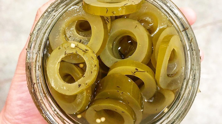While you may not come across kelp pickles as commonly as other pickled foods, they're relatively easy to get your hands on with the help of the internet. Brands like Barnacle Foods offer different flavored kelp pickles, including spicy, extra sour, sweet and tangy. You can find them, along with the rest of their kelp-based products, at specialty food stores and fish markets across the country. But, if you're not having any luck, you could always order them online or through the company's website.
