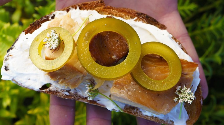 Sliced into rings, jarred, and pickled just like any other ingredient, kelp pickles have that same tangy and tart crunch you're used to — only they carry their own ocean-like umami flavor. Enhanced with marinades featuring combinations of various seasonings and herbs, kelp pickles are fresh, savory, and umami, fitting perfectly on a burger or sandwich, salad, and even the classic pairing of deviled eggs. Their subtle ocean flavor works particularly well in vegan tuna and tuna salad recipes, as it adds a slight fishy aroma — an important element that's often missing in plant-based varieties. In the same way, they're a great addition to veggie sushi and poke bowls.