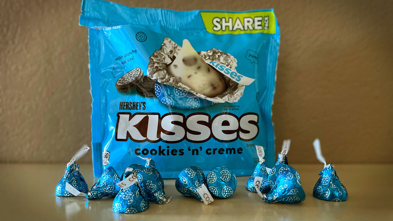 Don't get us wrong: We like Cookies 'n' Creme Kisses perfectly fine and are planning to finish up the bag eventually — but only after we finish all of the flavors listed below. Note that Cookies 'n' Creme Kisses come in attractive blue foil wrappings, making them a fun option for baby shower favors, birthday party treats, and even Hanukkah gifts.