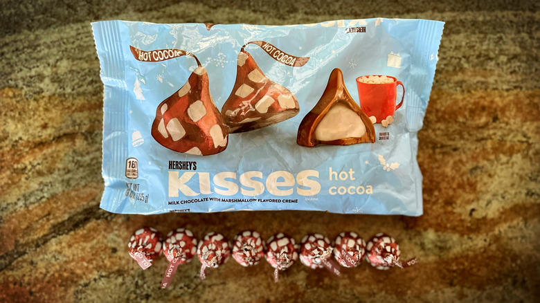 Overall, we had some mixed reviews from our team on Hot Cocoa Kisses, another of Hershey's holiday flavors. On the one hand, we liked the contrast of the solid outer milk chocolate shell with the gooey marshmallow-flavored creme filling. On the other hand, most of us didn't actually love the overall flavor effect of this. (Then again, we didn't NOT like it, either.) To be perfectly upfront, marshmallow goo isn't our favorite thing. However, we suspect that many marshmallow-loving kids out there would go bananas for this product.