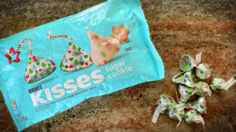 Sugar Cookie is part of a strong Hershey's Kisses holiday line-up but it is far from our favorite flavor. In fact, we really have no interest in even finishing the bag. The base of these Kisses consists of a solid white creme. Then, crunchy pieces of red and green cookies are sprinkled throughout the base. Although the cookie pieces add a nice texture detail, it is not enough to balance out the overly sweet taste (and unpleasant aftertaste). Not only do Sugar Cookie Kisses not taste anything like sugar cookies, they don't even taste good.