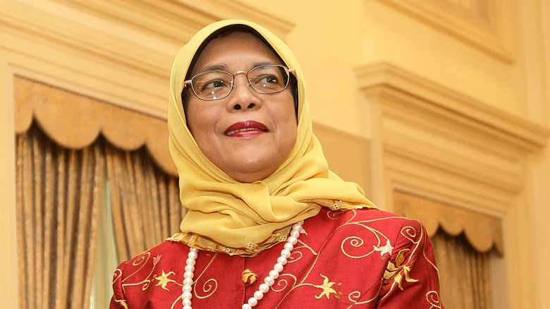 Like many of her countryfolk, Singapore's first female president Halimah Yacob is a big foodie. In an interview with Discover Singapore, Yacob had a tough time narrowing down her favorite dish. Initially, her top three choices were mee rebus, a Malay noodle soup dish prepared with sweet potato-based gravy, curry powder, and shrimp; laksa, a spicy rice noodle soup from Malaysia; and nasi lemak, a Malaysian coconut rice dish served with fried crispy anchovies, toasted peanuts, and cucumber.