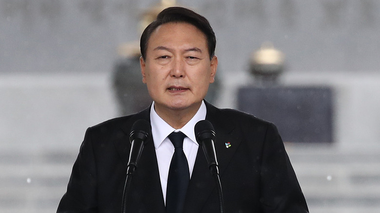 South Korea's president grew up appreciating food. In an interview with The Washington Post, the conservative party leader claimed that his mother was a good cook who fed him well. Given Yoon's early exposure to quality food, it's no wonder that he developed a love of cooking and sharing meals. He's particularly skilled in whipping up traditional Korean dishes. Some of his specialties include gyeran mari (mini rolled omelets filled with vegetables and nori), kimchi jjigae (a spicy stew made with pork, scallions, and diced tofu), and bulgogi (a marinated beef dish prepared on a griddle).