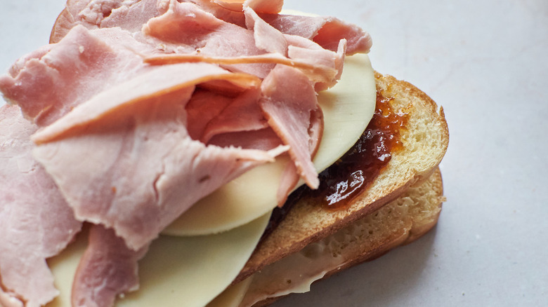 McGlinn does say, though, that "You can switch up the meats and jam." She feels that "ham is a perfect complement for sweet foods" while "provolone is melty and a good neutral flavor that brings out the fig," but you can always add turkey and/or use Swiss or Gruyere in place of the provolone. You might also opt to have the fig jam on the side or else swap it out for blackberry or raspberry jam. In fact, you could even go so far as to replace the jam with mustard as some Monte Cristos do, although if you do, McGlinn tells us, "I highly recommend mixing it with the mayonnaise to cut some of the spice."