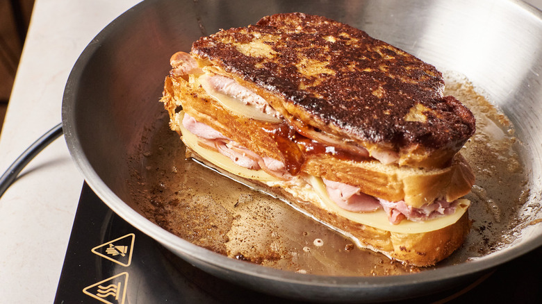 Recipe developer Michelle McGlinn describes the Monte Cristo sandwich as "French toast with meat and cheese smushed in between," but goes on to say that it's "more delicious than it sounds." The Monte Cristo may have evolved from the classic French croque monsieur, but the best-known version could be the one served at Disneyland's Blue Bayou restaurant. The menu there lists a Monte Cristo sandwich made with turkey, ham, and Swiss cheese, with preserves served on the side for dipping, but McGlinn makes her sandwich with ham and provolone and a layer of fig jam. As she tells us, "This combination is my personal favorite."