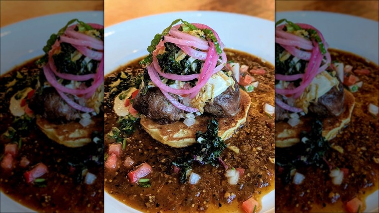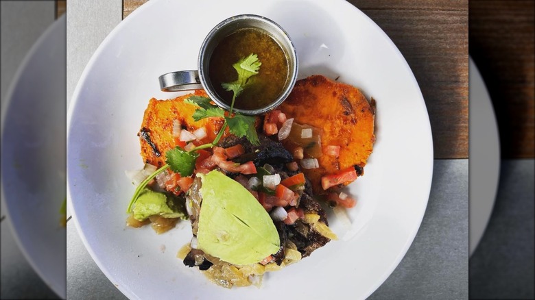 Another standout dish is the sweet corn bisque, made with huitlacoche and white truffle crema. Though Elote Cafe has an incredible selection of vegetarian dishes, the meats are not to be missed. The lamb adobo is served alongside ancho chile sauce, rice, and refried black beans. Blue cheese and guajillo chile sauce add an unexpected zing to classic carne asada. Meanwhile, smoked pork cheeks are the center of a hearty meal, served with cascabel chile sauce, grandma's corn cake, and buttermilk cumin drizzle.
