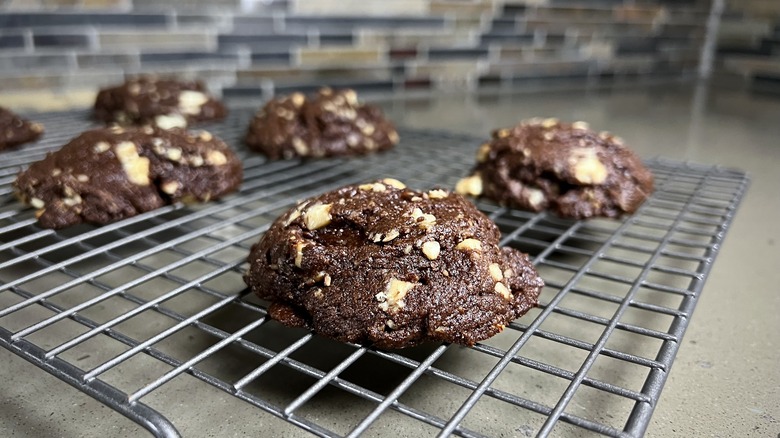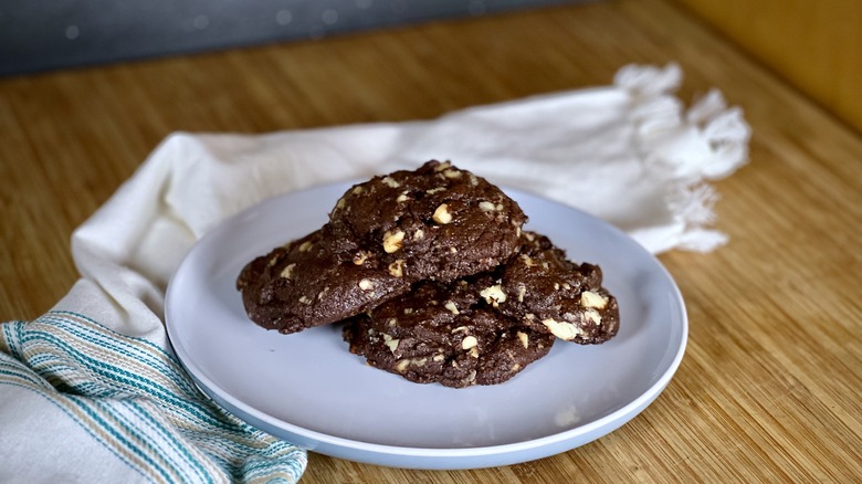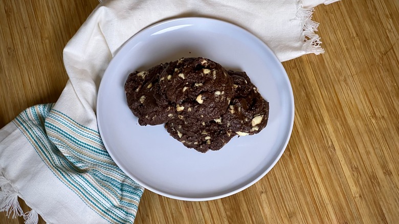 So we were curious about the idea of adding feta cheese to chocolate cookies. A brownie-like cookie rarely disappoints, but we wondered if the use of cheese took the dish from ingenious to weird. It's not that adding cheese to dessert is a novel concept, and we're all about creating sweet-and-salty vibes. The issue here is that we just couldn't wrap our heads around how tangy, briny feta cheese mixes well with chocolate. Our interest was piqued enough to give it a go, so we watched the viral Instagram video that inspired the trend a few times, picked up the necessary ingredients, and got ready to bake. After our taste test, we determined that we would absolutely make this cookie again, with a small modification.