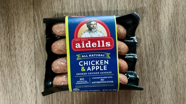 The sausage skins don't have that snap we love, but they do have a distinct chewiness that is hard to slice into. Inside, the meat itself is slightly mushy and overly processed. One of us said that the texture reminded her of a cheap hotdog, which was a little harsh, but also pretty on the nose. We didn't get any of the fresh, tart, crisp apple flavor, which is the part we most looked forward to. In the end, both taste and texture were a little dull. Still, it wouldn't be bad at all sliced and mixed into a recipe where its mild and unchallenging qualities meld well with other flavors. Try using it in a simple yet delicious weeknight dinner like this chicken sausage and bell pepper pasta recipe we love.