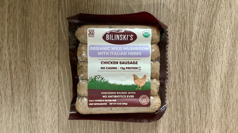 These may not look like much at first glance; we admit it. We all love a nicely golden-brown link, but are rather grey and unappetizing, huh? It didn't entice us to sample it, but here we are, doing our job. Thankfully the bland color disguises an intriguing, delicious, and nuanced product. Well, as nuanced as sausage can be. Bilinski's Organic Wild Mushroom With Italian Herbs Chicken Sausage works some practical magic with flavor, and we'd love to see what else the brand is capable of. Rather than simply tasting like a mushy log-shaped mushroom, it's still definitely a chicken sausage with enough hearty flavor to satisfy any carnivore.