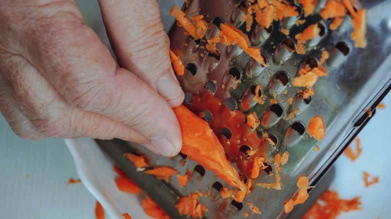 It wouldn't be carrot cake without the carrots, right? Carrot cake recipes typically use grated carrots, which can be grated down using a box grater or a food processor with a shredding disc. A food processor is a good tool if you need a lot of carrots for your recipe, but the shredding disc won't grate the carrots finely enough for maximum utility.